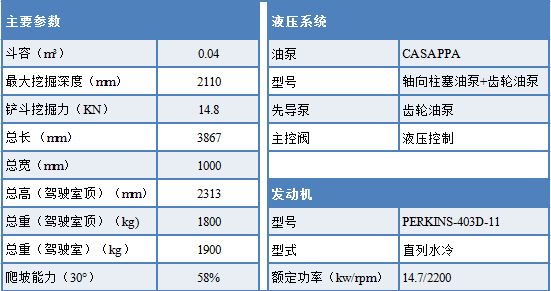 ● 獲得CE認證 ● 珀金斯高力矩發(fā)動機,更小的噪音,更低的油耗 ● 動力與液壓系統(tǒng)完美適配,掘起力提升10% ● 伸縮式橡膠履帶提升底盤穩(wěn)定性 ● 半無尾設計,適應狹窄環(huán)境 ● 液壓快換、破碎錘、松土齒、拇指鉗、旋挖鉆等屬具可供選配 ● 多樣化挖斗選擇